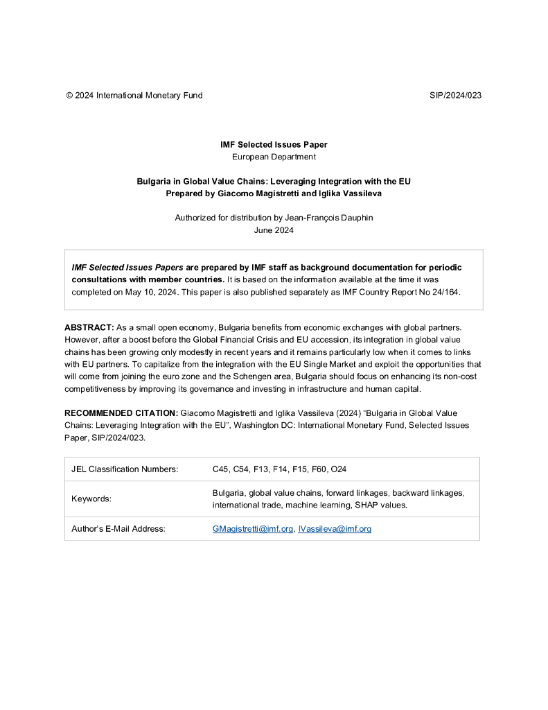 国际货币基金组织:2024全球价值链中的保加利亚:利用与欧盟的一体化报告(英文版).pdf