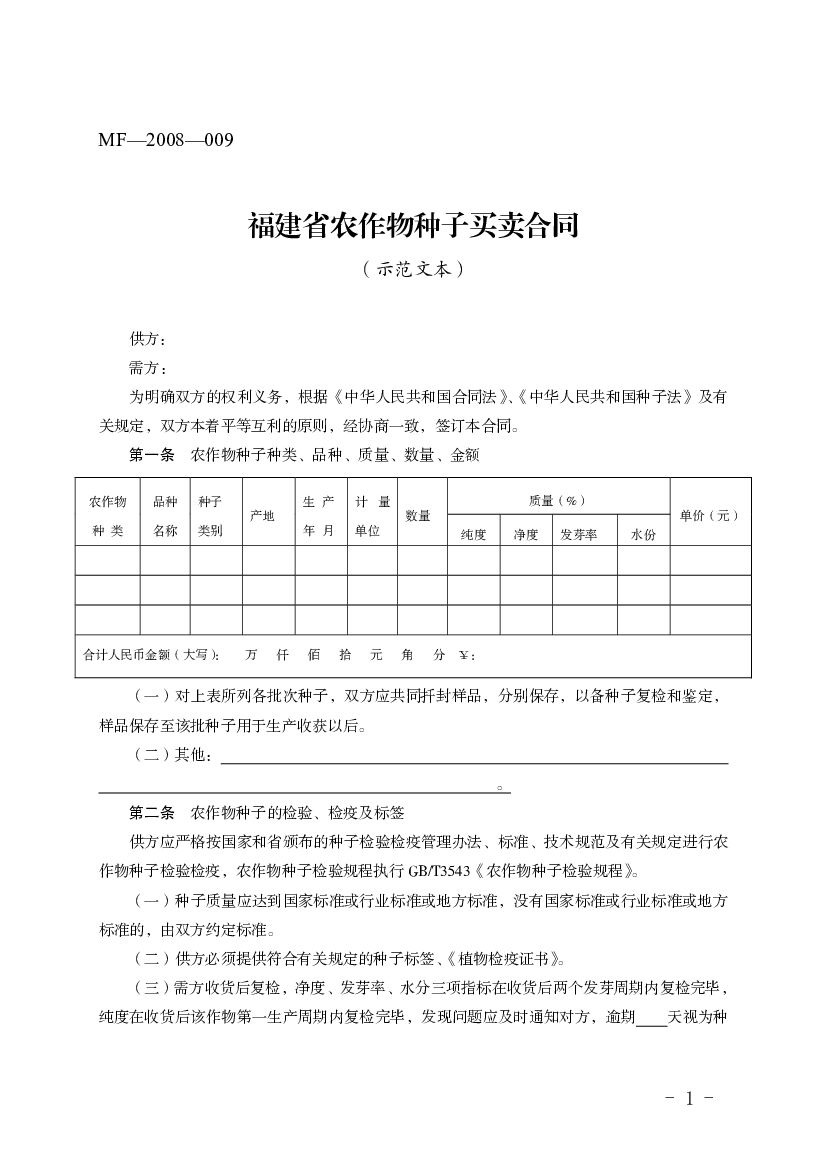 MF-2008-009 福建省农作物种子买卖合同.pdf