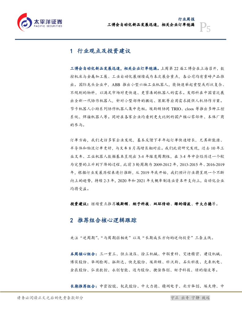 太平洋证券:机械行业周报:工博会自动化新品发展迅速,相关企业订单饱满.pdf