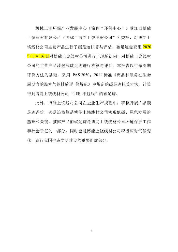 江西博能上饶线材有限公司碳足迹报告.doc