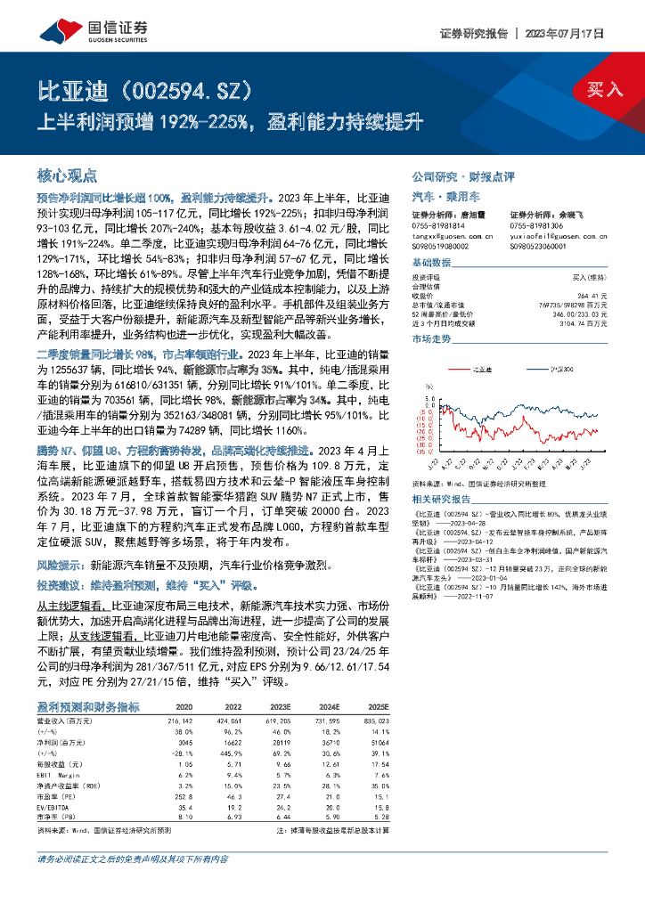 国信证券:比亚迪(002594)-上半利润预增192%-225%,盈利能力持续提升.pdf