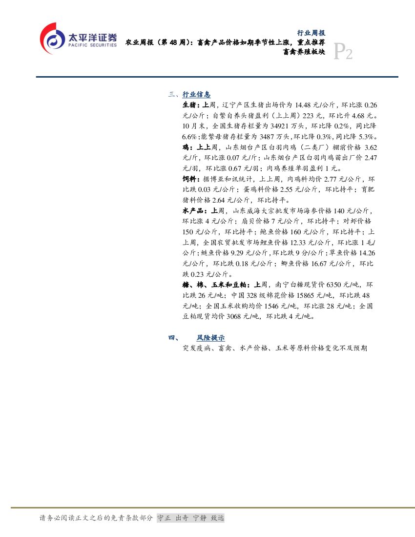 太平洋证券:农业周报(第48周):畜禽产品价格如期季节性上涨,重点推荐畜禽养殖板块.pdf