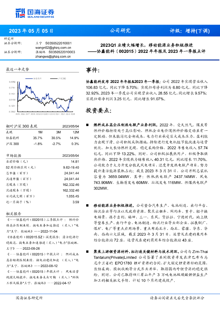 国海证券:协鑫能科(002015)-2022年年报及2023年一季报点评:2023Q1业绩大幅增长,移动能源业务积极推进.pdf