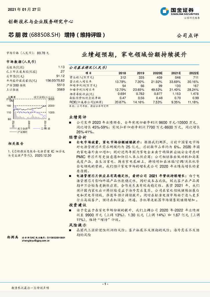 国金证券:芯朋微(688508)-业绩超预期,家电领域份额持续提升.pdf