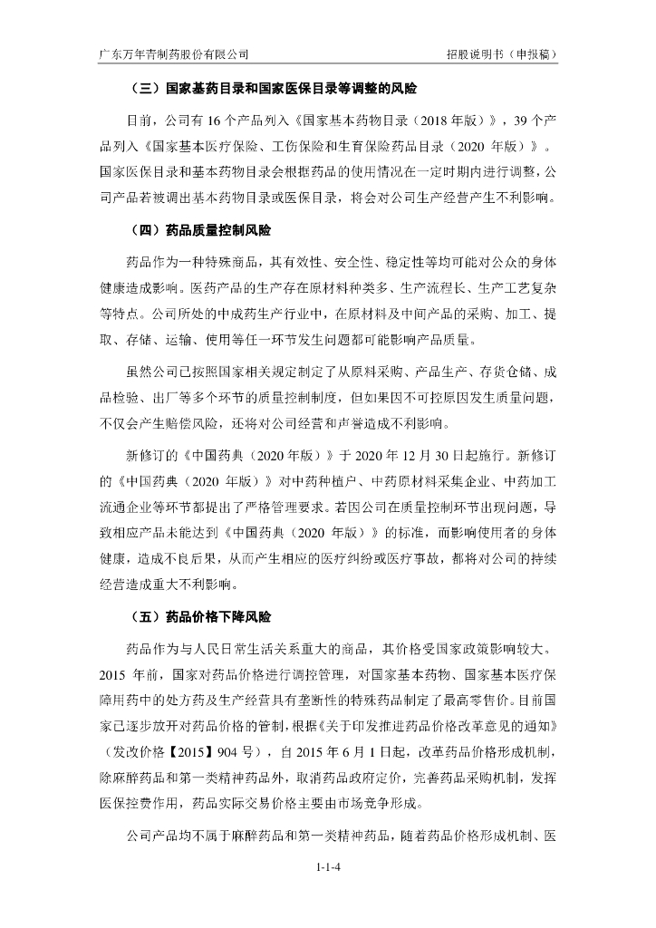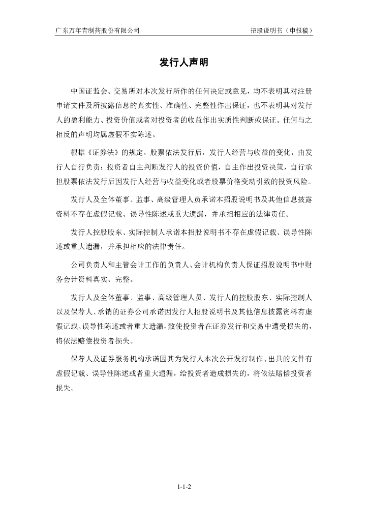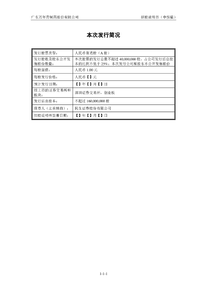 广东万年青制药股份有限公司深交所创业板IPO上市招股说明书.pdf