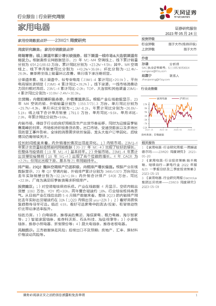 天风证券:家用电器23W21周度研究:家用空调数据点评.pdf