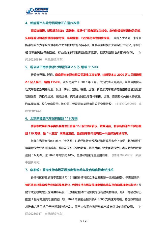 乘联会:新能源汽车行业信息周报(2025年9月15日-9月21日)