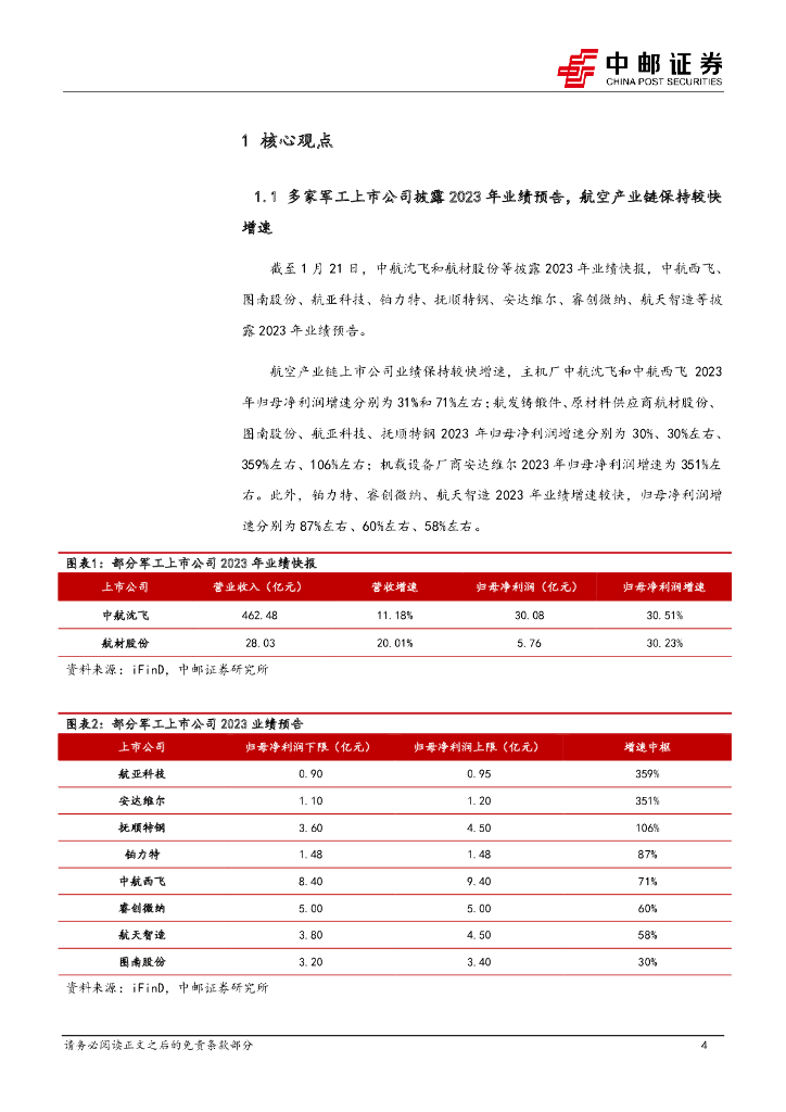 中邮证券:国防军工行业报告:多家军工上市公司披露业绩预告,航空产业链保持较快增速.pdf