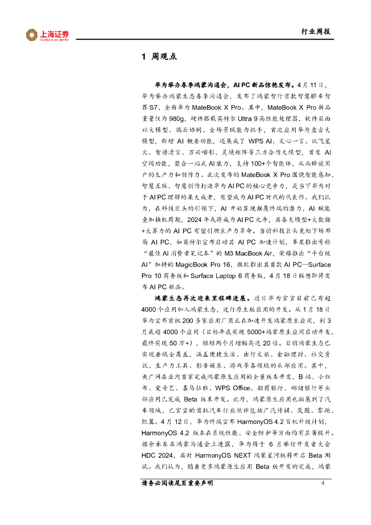 上海证券:计算机行业周报:华为发布AIPC新品,鸿蒙生态再迎里程碑式进展.pdf