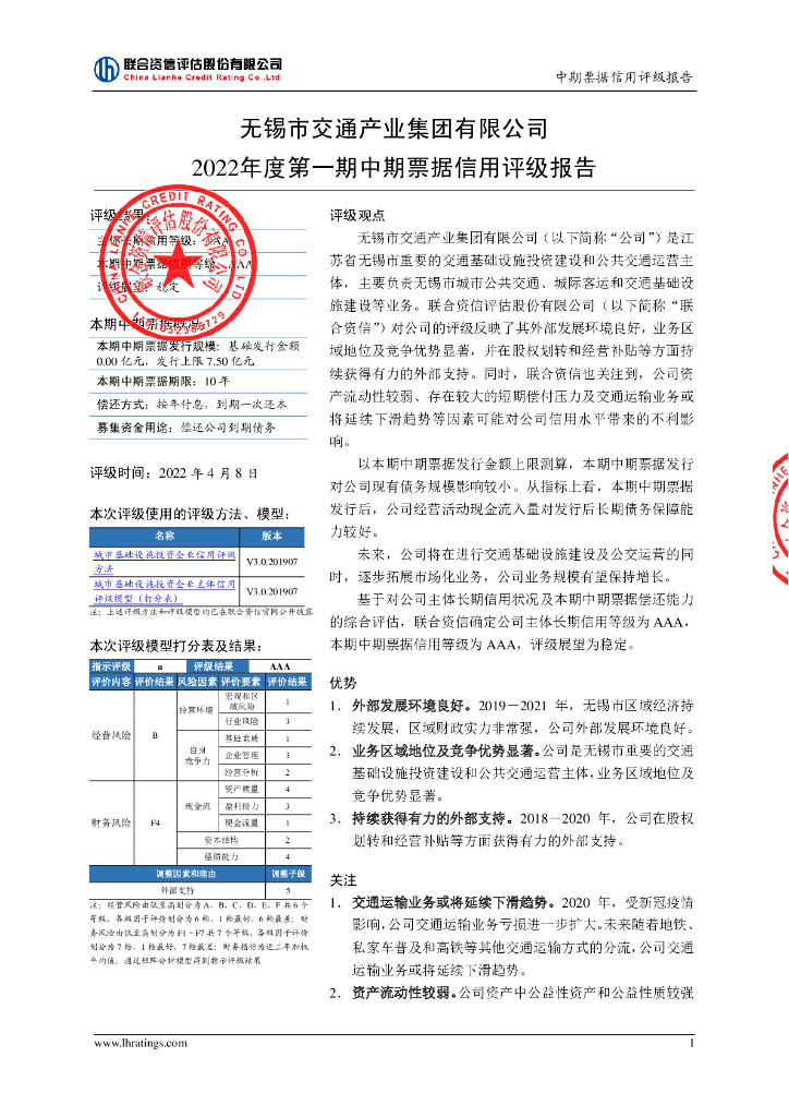 联合资信:无锡市交通产业集团有限公司2022年度第一期中期票据信用评级报告及跟踪评级安排.pdf