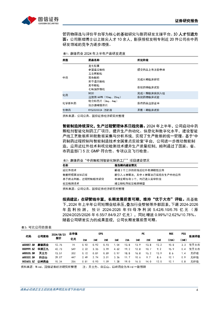 国信证券:康缘药业(600557)-2024年中报点评:短期业绩承压,创新研发成果持续兑现.pdf