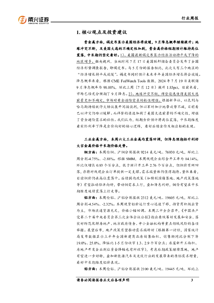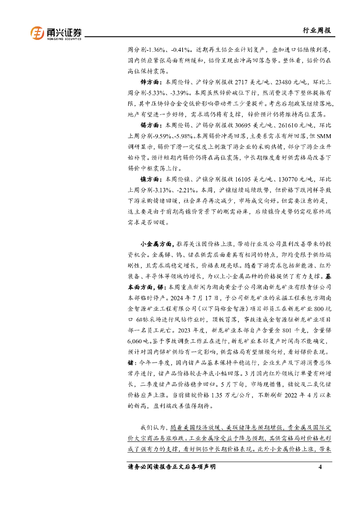 甬兴证券:有色行业周报:褐皮书显示美国经济放缓将持续,金属价格高位震荡.pdf