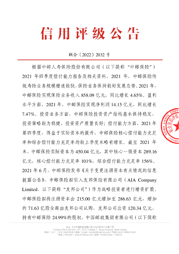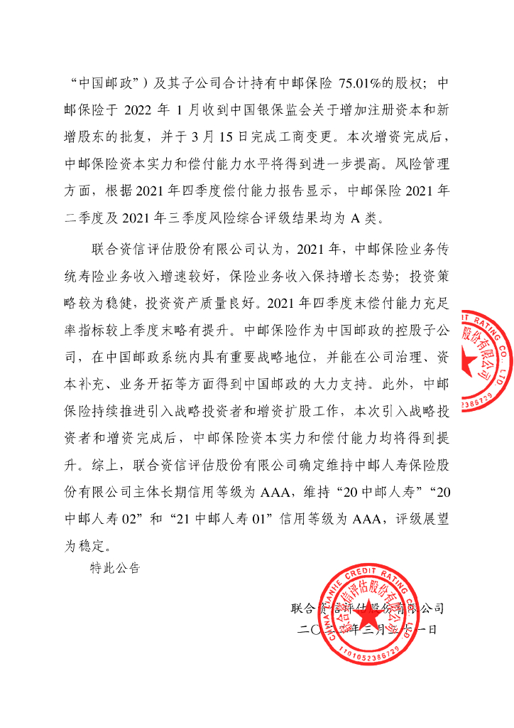联合资信:中邮人寿保险股份有限公司季度跟踪评级公告.pdf