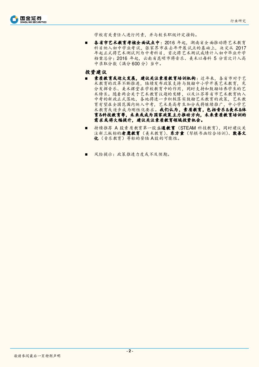 国金证券:教育行业2017年日常报告:两会热议艺术教育纳入中考考核体系,建议关注素质教育培训未来发展.pdf
