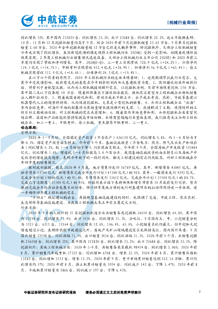 中航证券:机械行业周报:中小制造业企业景气度持续向好,“十四五”规划再提基础设施投资和高端制造.pdf