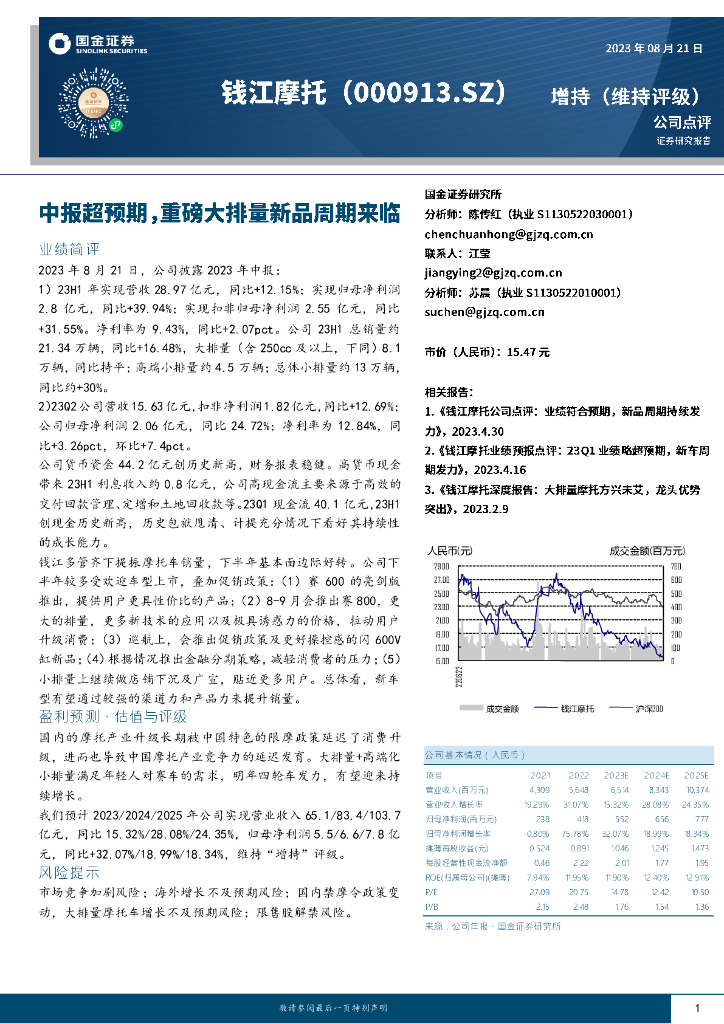国金证券:钱江摩托(000913)-中报超预期,重磅大排量新品周期来临.pdf