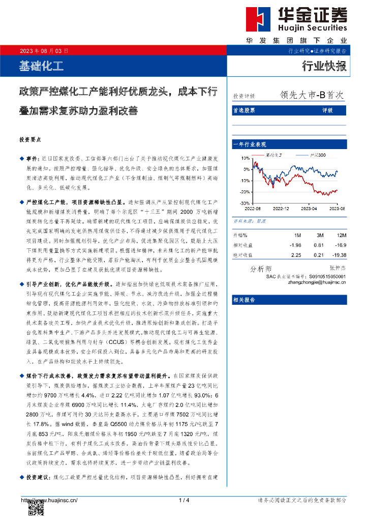 华金证券:基础化工:政策严控煤化工产能利好优质龙头,成本下行叠加需求复苏助力盈利改善.pdf