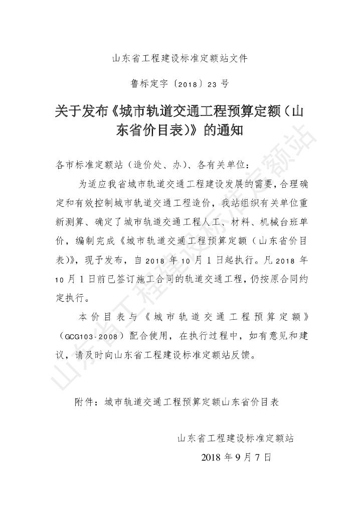 山东省工程建设标准定额站:城市轨道交通工程预算定额山东省价目表(2018).pdf