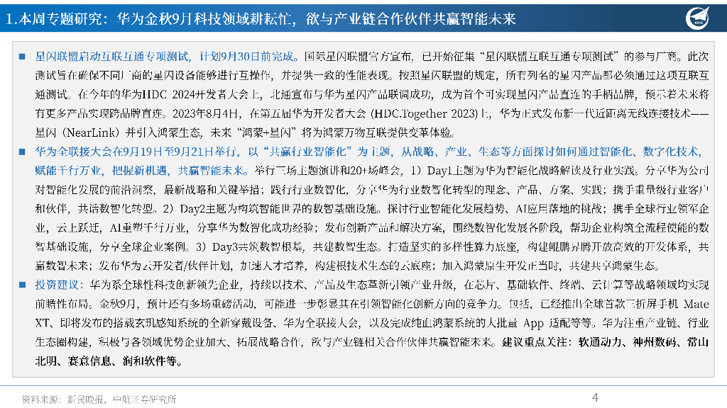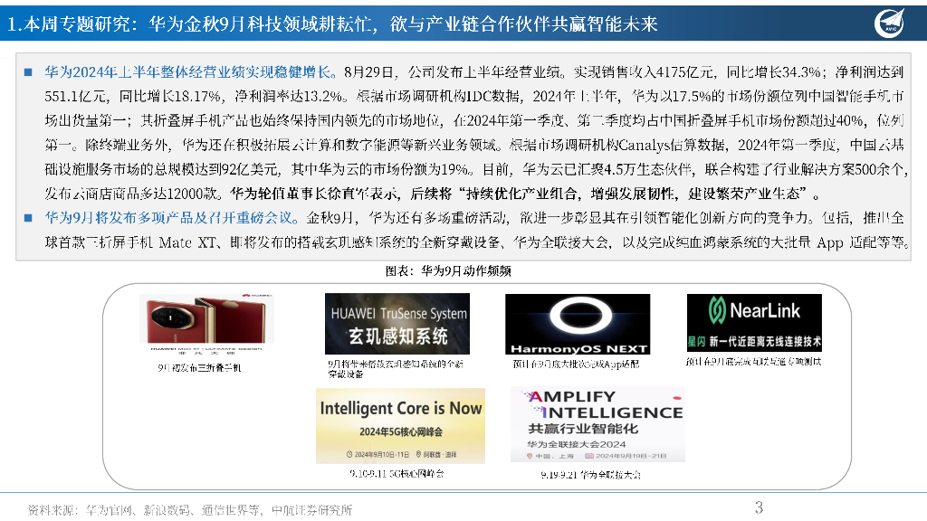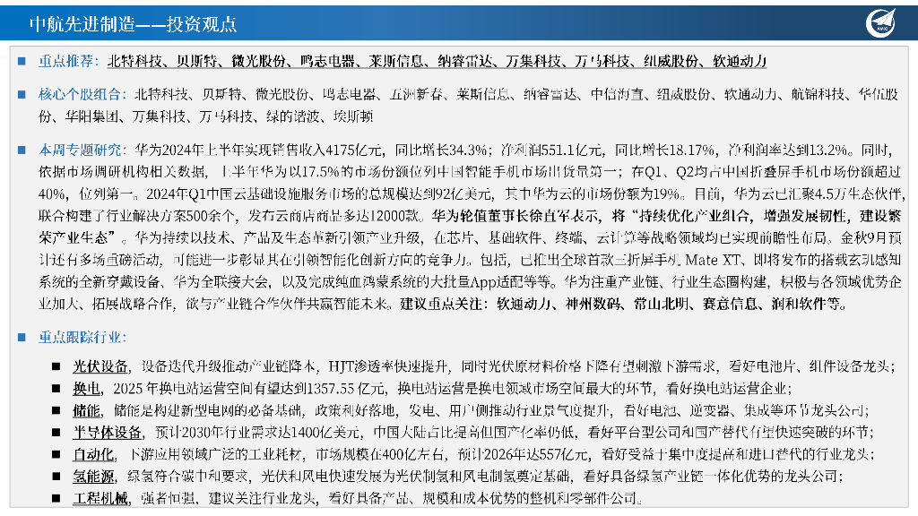 中航证券:先进制造行业周报:华为金秋9月科技领域耕耘忙,欲与产业链合作伙伴共赢智能未来.pdf