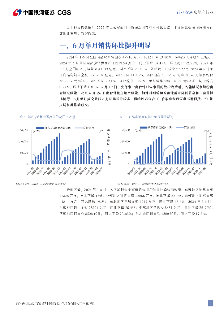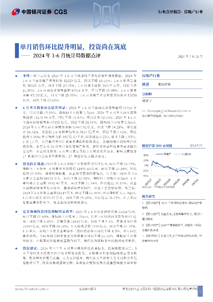 中国银河:房地产行业2024年1-6月统计局数据点评:单月销售环比提升明显,投资尚在筑底.pdf