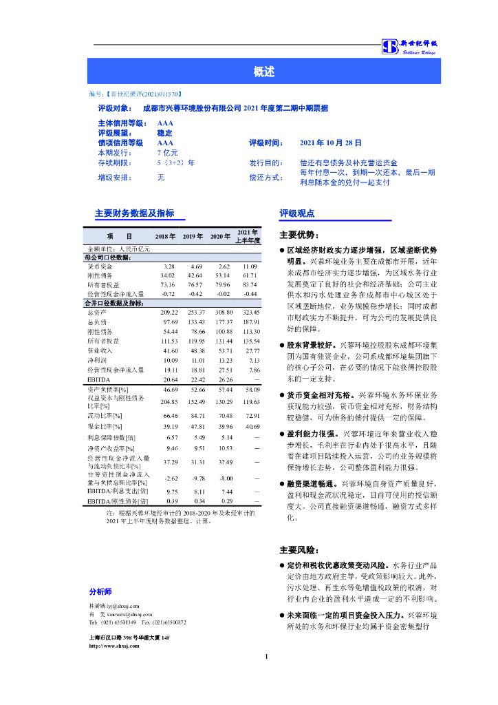 新世纪:成都市兴蓉环境股份有限公司信用评级报告.pdf