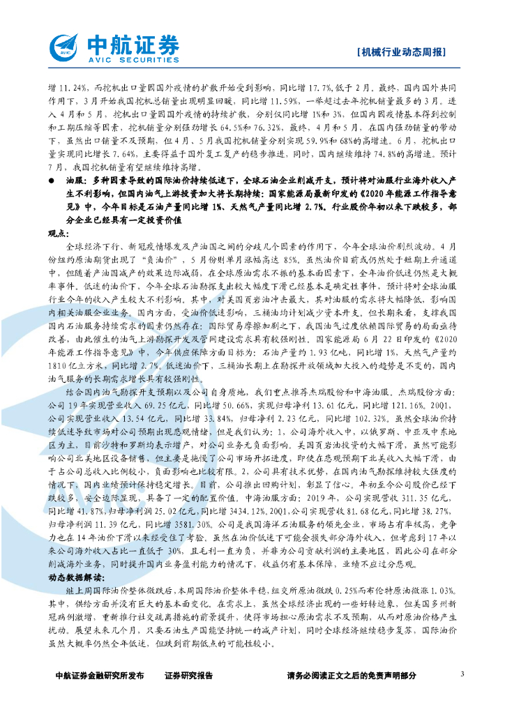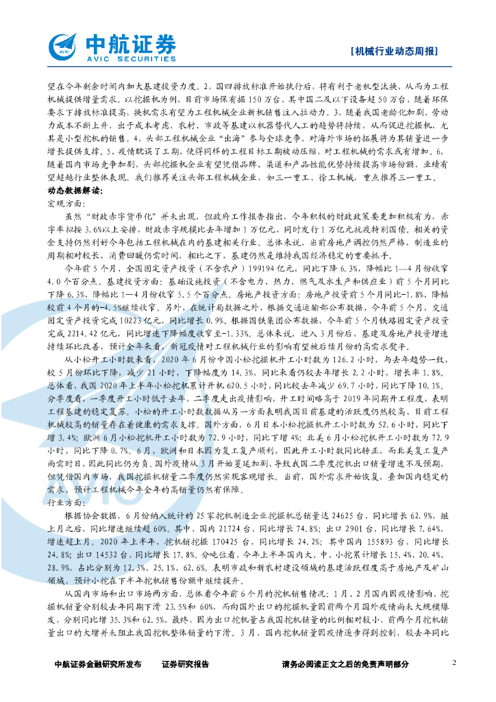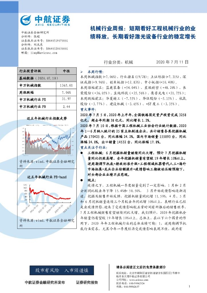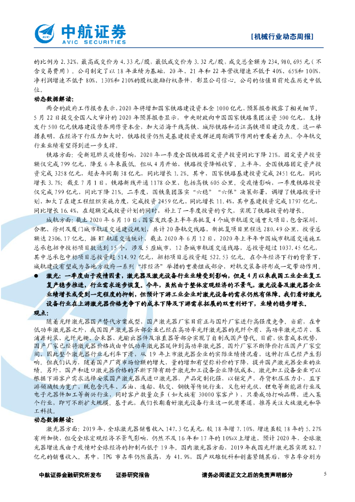 中航证券:机械行业周报:短期看好工程机械行业的业绩释放,长期看好激光设备行业的稳定增长.pdf