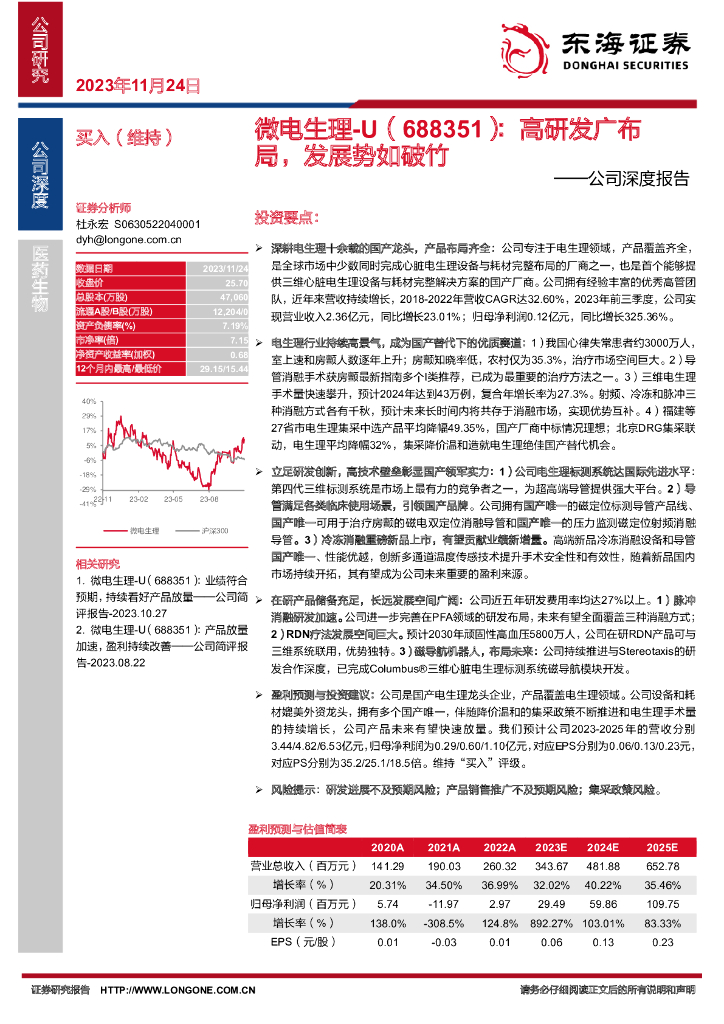 东海证券:微电生理(688351)-公司深度报告:高研发广布局,发展势如破竹.pdf