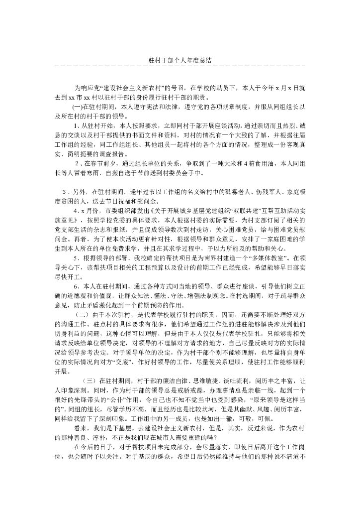 驻村干部个人年度总结.doc
