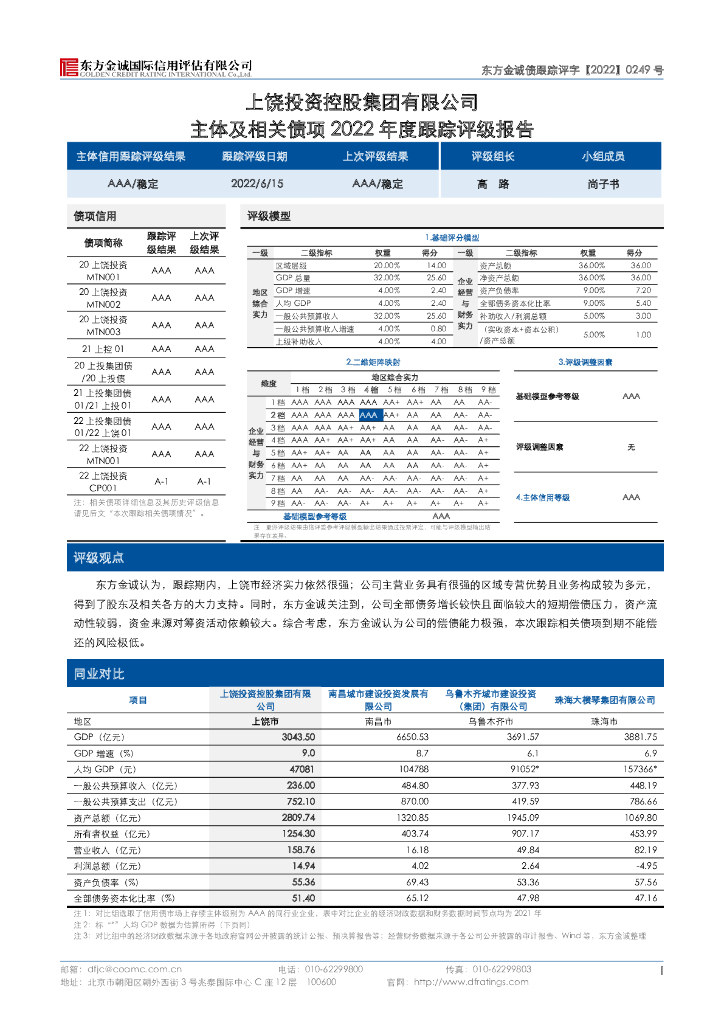 东方金诚:上饶投资控股集团有限公司主体及相关债项2022年度跟踪评级报告.pdf