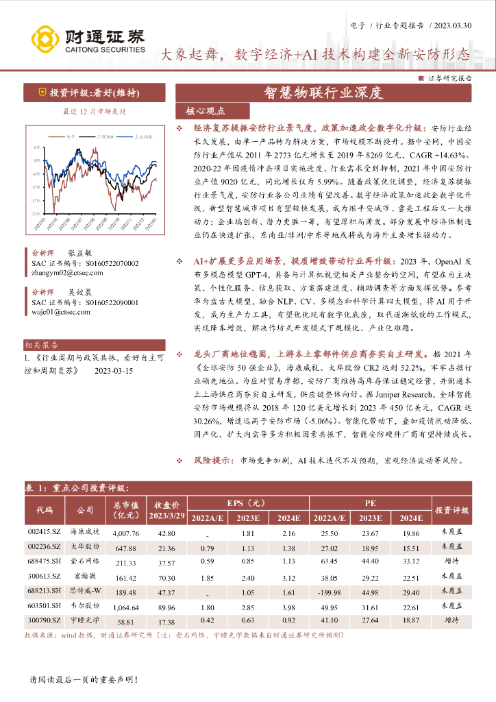 财通证券:电子行业专题报告:大象起舞,数字经济+AI技术构建全新安防形态.pdf