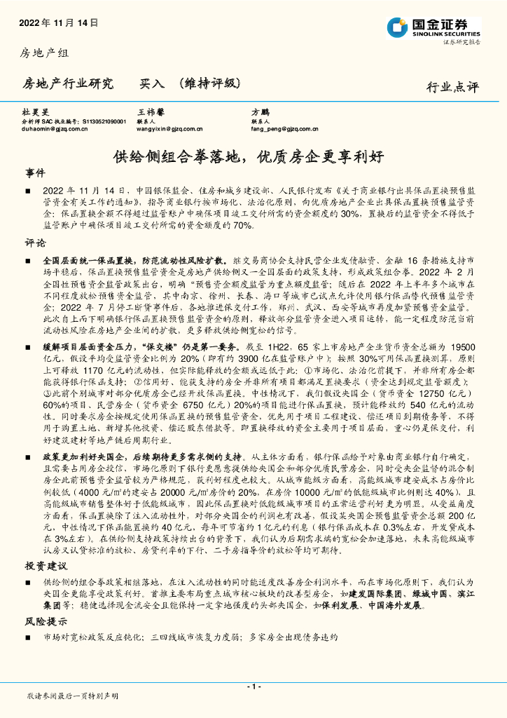 国金证券:房地产行业研究:供给侧组合拳落地,优质房企更享利好.pdf