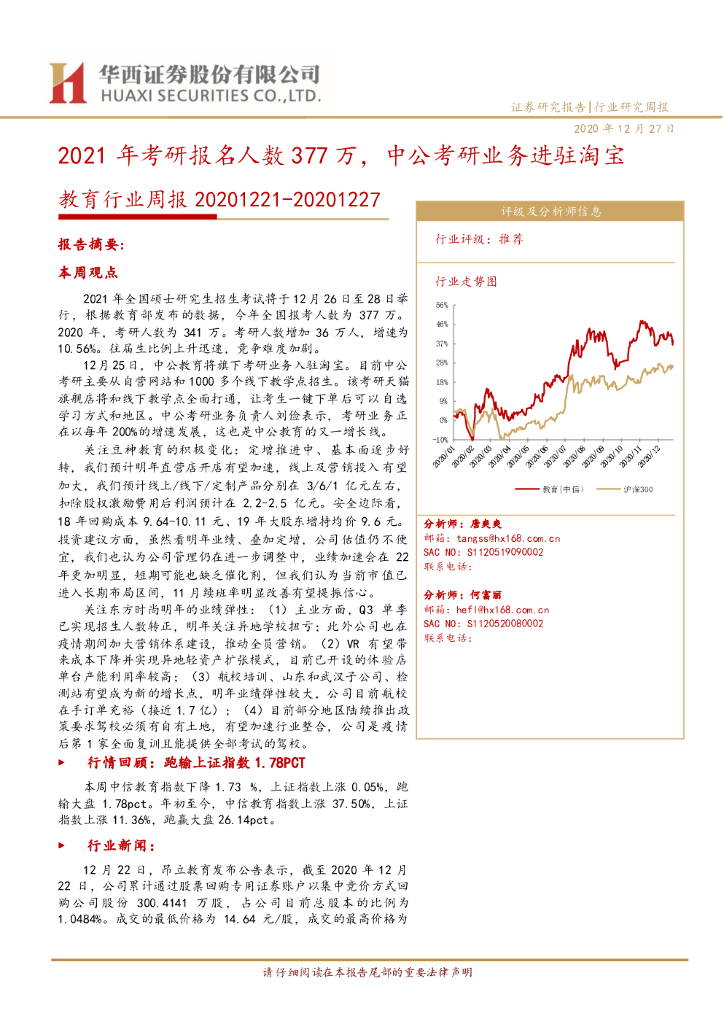 华西证券:教育行业周报:2021年考研报名人数377万,中公考研业务进驻淘宝.pdf