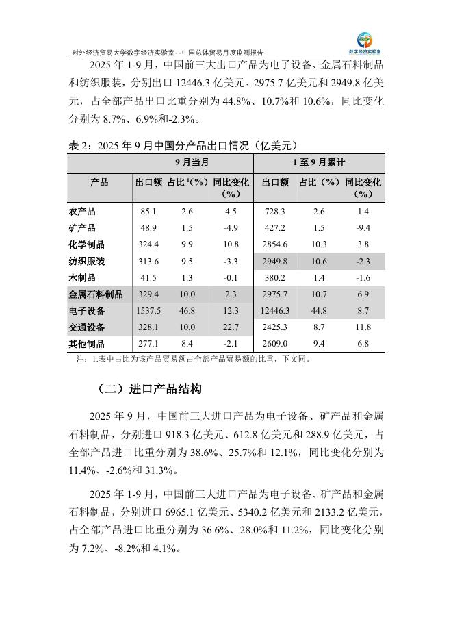 对外经济贸易大学:中国总体贸易月度监测报告(2025年1-9月).pdf