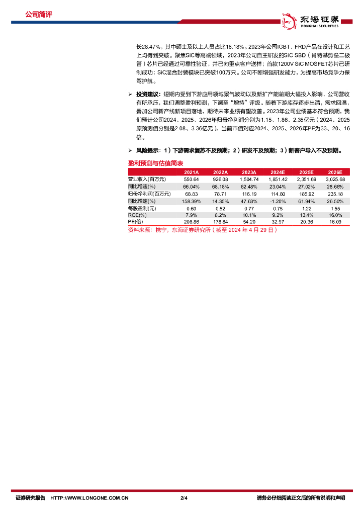 东海证券:宏微科技(688711)-公司简评报告:2024Q1业绩短期承压,光伏、车规带动长期增长.pdf