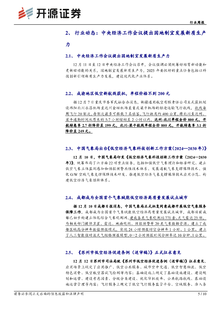 开源证券:低空经济行业周报(12月第2周):中央经济工作会议提出因地制宜发展新质生产力.pdf