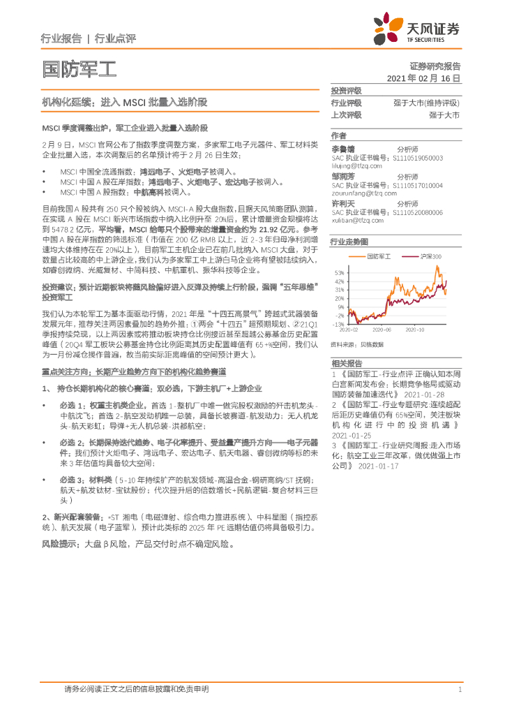 天风证券:国防军工行业点评:机构化延续:进入MSCI批量入选阶段.pdf