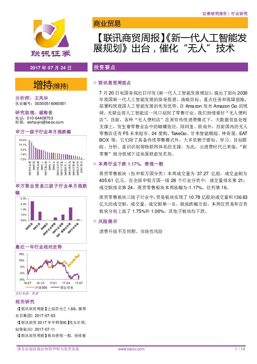 联讯证券:【联讯商贸周报】《新一代人工智能发展规划》出台,催化“无人”技术.pdf