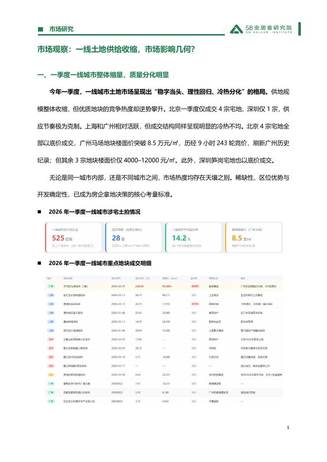 58安居客研究院:2026年市场观察:一线土地供给收缩,市场影响几何.pdf