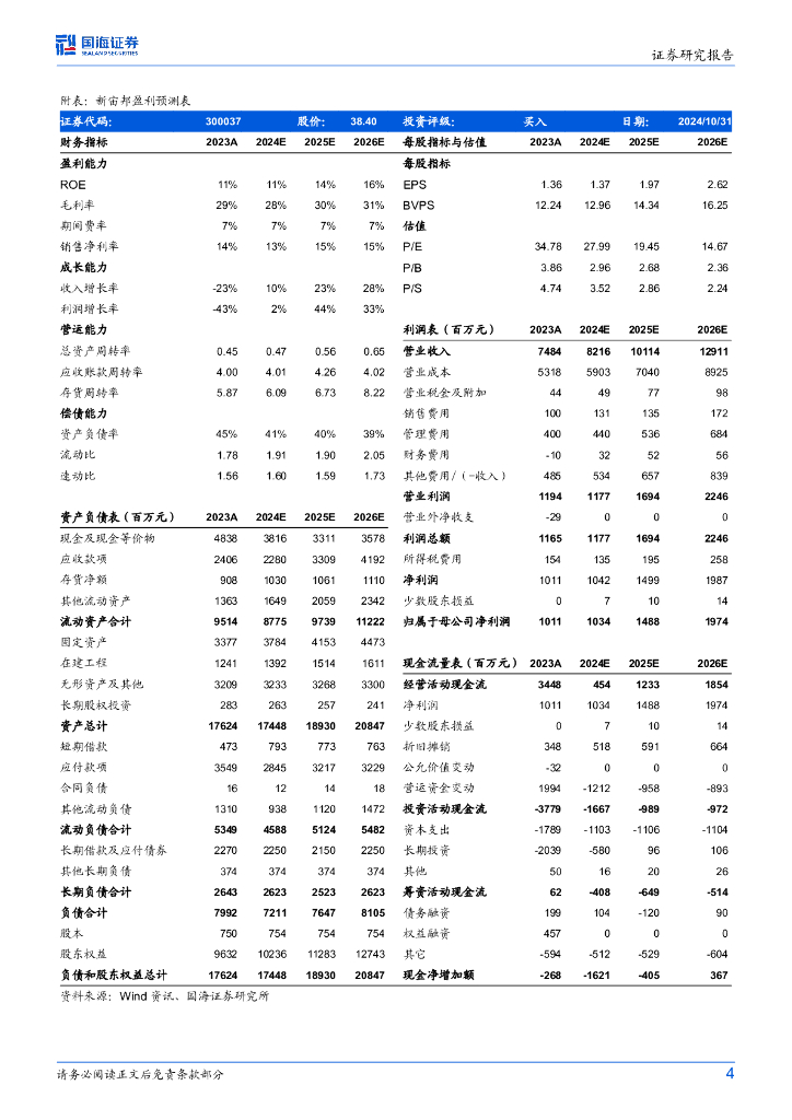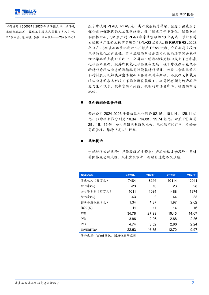 国海证券:新宙邦(300037)-2024年三季报点评:2024Q3净利润环比增长,看好有机氟化学品放量.pdf