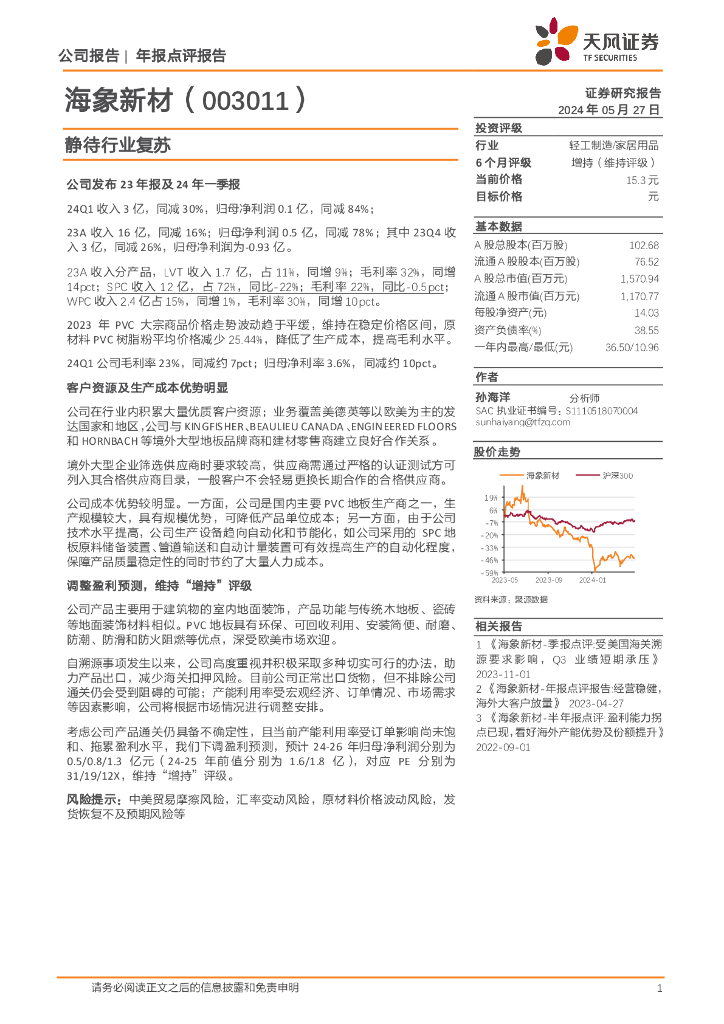 天风证券:海象新材(003011)-静待行业复苏.pdf