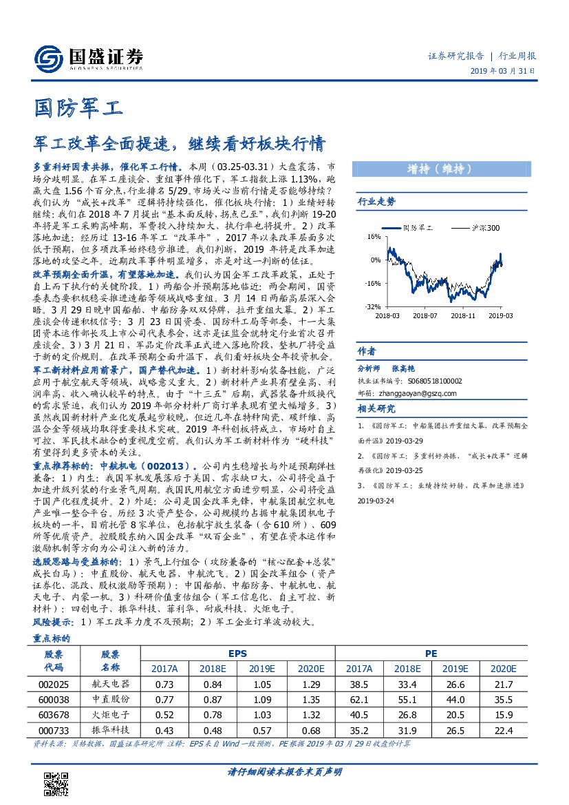 国盛证券:国防军工行业周报:军工改革全面提速, 继续看好板块行情.pdf