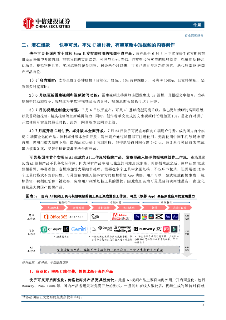 中信建投证券:传媒行业国产AI视频:可用度强性价比高,快手可灵开启C端付费.pdf