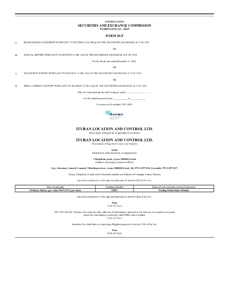 Ituran Location and Control Ltd.(ITRN)2022财年年度报告(英文版).pdf
