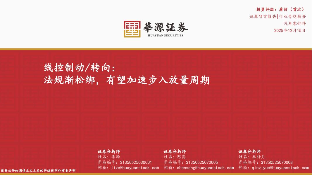 华源证券:汽车零部件行业专题报告:线控制动/转向:法规渐松绑,有望加速步入放量周期.pdf