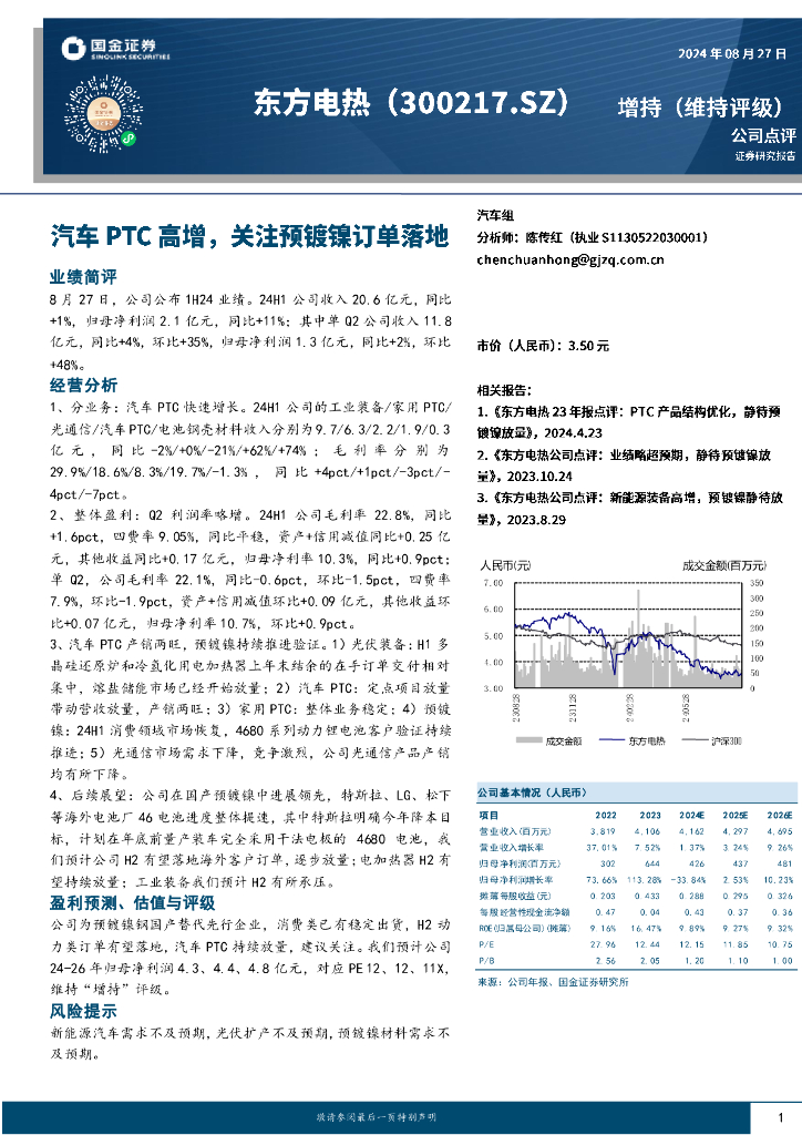 国金证券:东方电热(300217)-汽车PTC高增,关注预镀镍订单落地.pdf