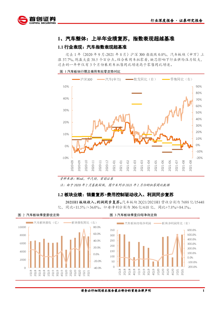 首创证券:汽车行业深度报告:2021年中报总结:销量复苏+费用控制驱动业绩增长,看好下半年补库贡献业绩弹性.pdf