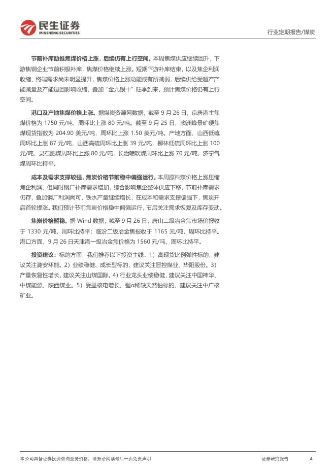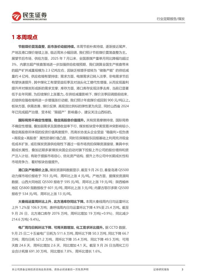 民生证券:煤炭周报:节前煤价震荡盘整,后市涨价动能持续.pdf
