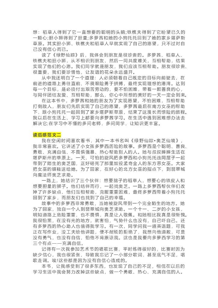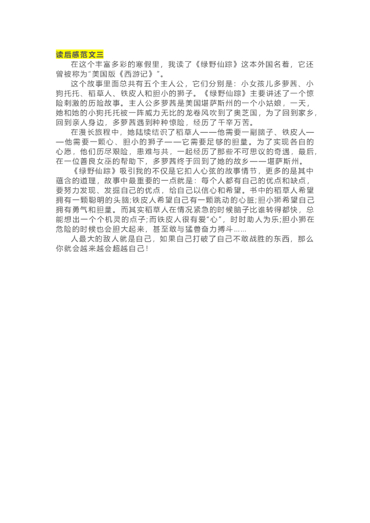 04《绿野仙踪》精彩片段+读后感.doc