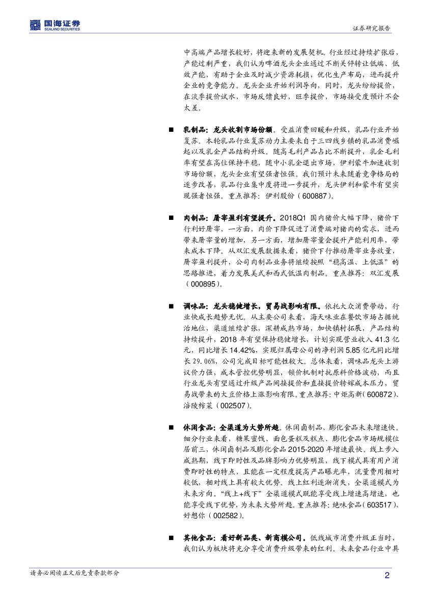 国海证券:食品饮料行业2018年中期策略报告:看好运营能力强的中高端白酒企业及具备新品类、新商模的食品类公司.pdf