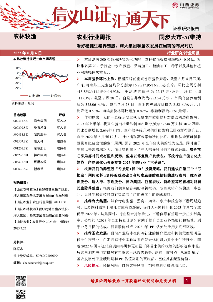 山西证券:农业行业周报:看好稳健生猪养殖股、海大集团和圣农发展在当前的布局时机.pdf